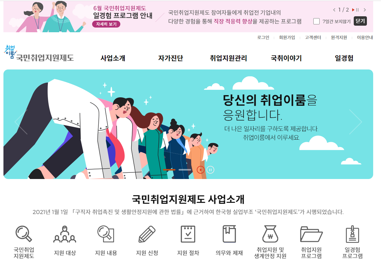 - 취업을 원하는 사람을 위해 취업지원서비스를 제공하고 저소득 구직자에게는 생계를 위한 최소한의 소득을 지원해주는 제도를 말합니다.
