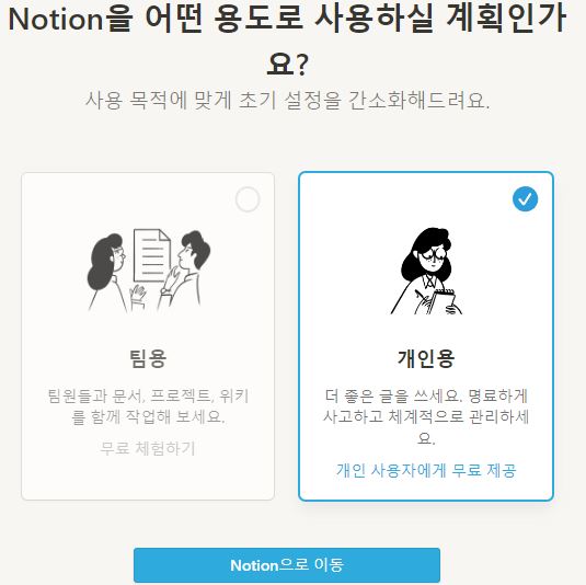 개인용 : 메모,필기용으로 주로 사용하실 분들이 선택하시면 되는데요 팀용과 달리 개인용은 무료!!