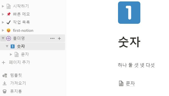 사이드 바의 [+새 페이지] 를 활용해 만들면 된다.