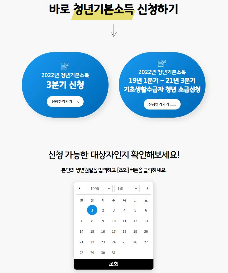 아래의 링크를 타서 자신이 태어난 날을 달력으로 표시하면 신청대상자 인지 알 수 있습니다.