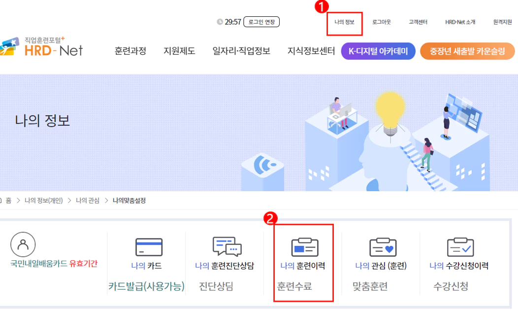 1. HRD-NET 메인 홈페이지에 로그인 한다.