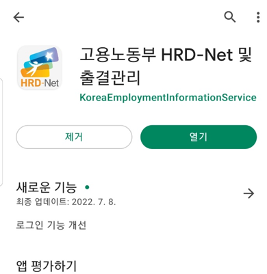 1.먼저 스토어에 들어가서 "HRD-NET" 을 치시면 출결관리가 나오실 껀데 설치를 해줍니다.