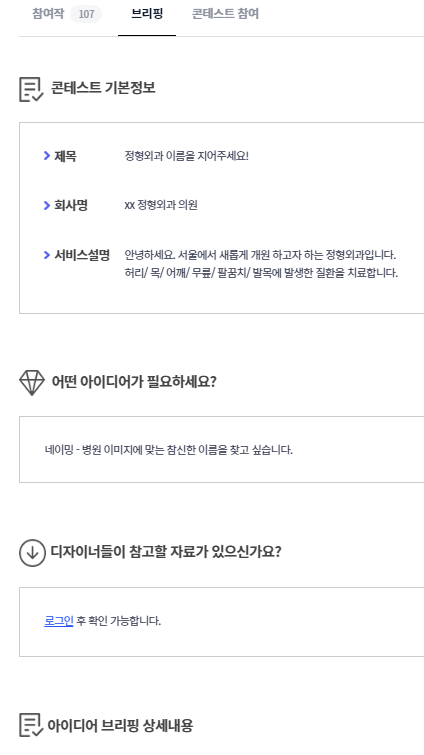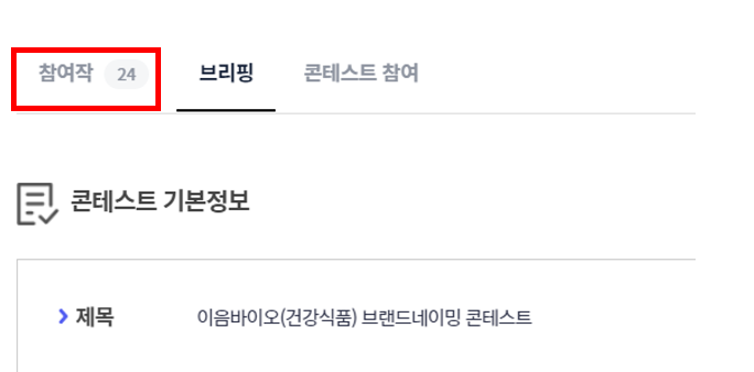 게시글을 아무거나 하나 들어가시면 [콘테스트 기본정보] , [선호하는 아이디어], [참고자료] 등