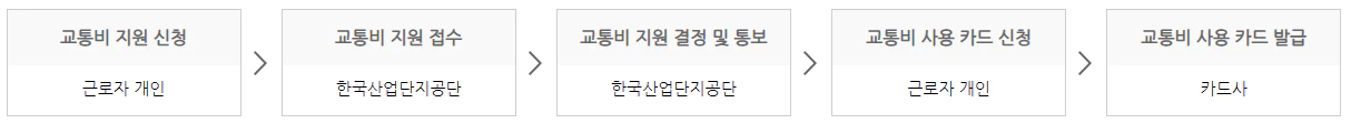 교통여건이 열악한 산업단지 내 중소기업에서 재직중인 청년들에게 매월 5만원의 교통비를 지원해 주는 카드입니다.