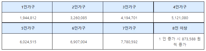 2. 기준 중위소득 요건 (아래 표 참고)