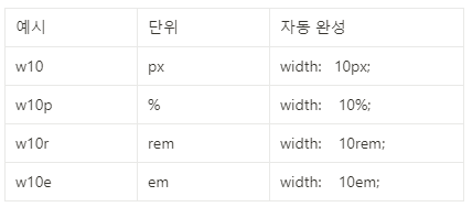 w100 -> width:100px; 로 자동완성을, df - > display:flex; 가 된다.