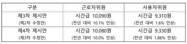 논의의 진전을 위해 공익위원이 제시한 심의촉진 구간 내에서 양측에 추가 수정안을 요구했지만 두 쪽 다 제출하지 않았다고 합니다.