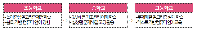 초등학교는 놀이형식의 블록기반 컴퓨터 언어를 경험을 중점으로 두었다.