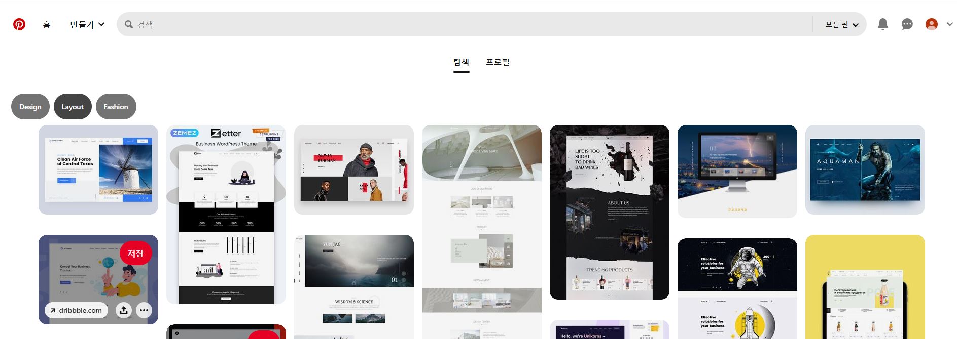 템플릿은 핀터레스트(pinterest)에서 레이아웃을 참고하였다. 여러 사이트에서 각가지의 템플릿들이 모여있는 사이트이다.