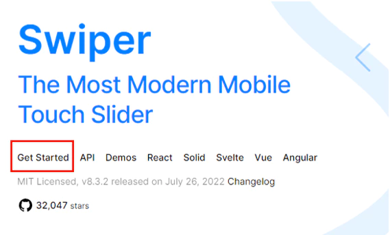 주로 CDN을 사용하기 때문에 [Use Swiper from CDN] 있는 영역으로 갑니다.
