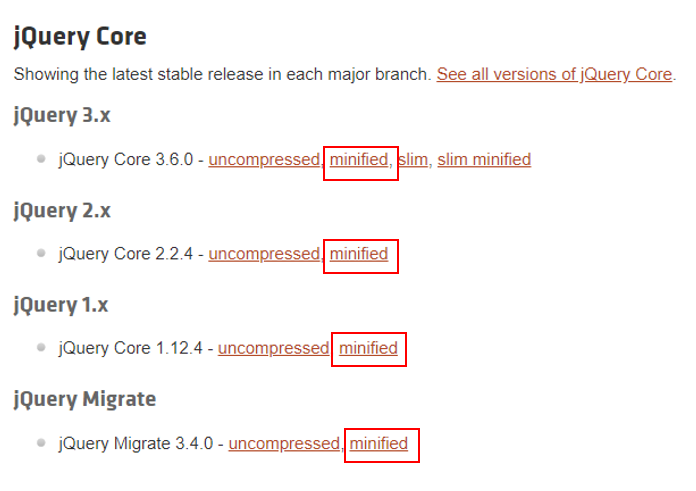 4. 원하는 버전의 minified를 눌러줍니다.
