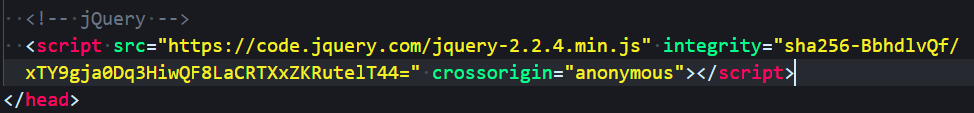 "<script src=\"https://code.jquery.com/jquery-1.12.4.min.js\"></script>",